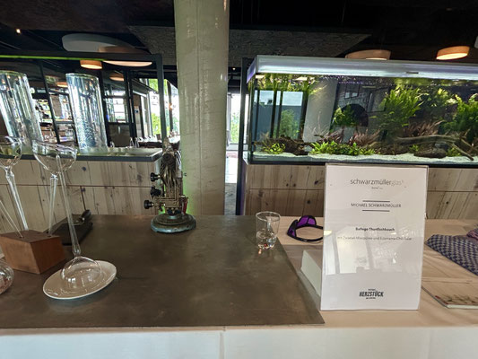Die Glascloche wird mit ca. 1200°C heissglühend über den Fisch /Fleisch/Gemüse gestülpt